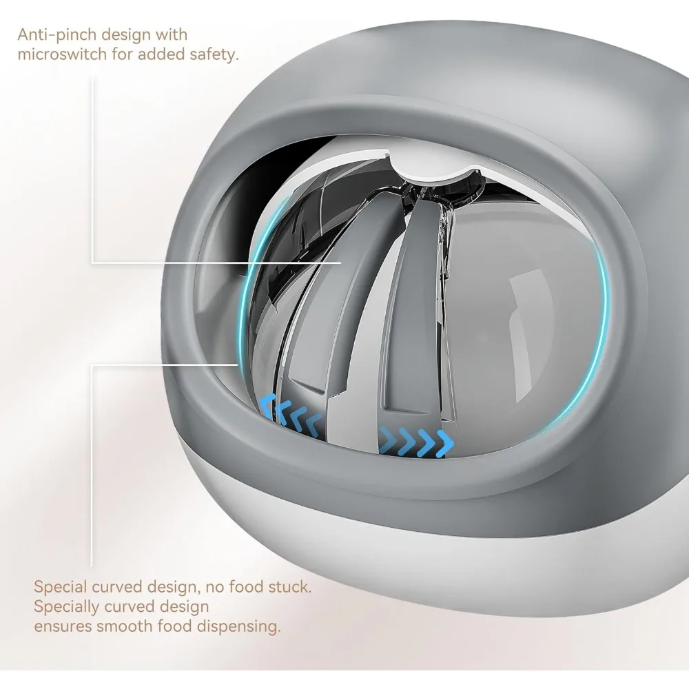 - 🔌 Dual Power Options – No Interruptions, Even During Outages: Stay worry-free with flexible power options. Plug in the feeder using the included 5V USB adapter or go cordless with 4 AA batteries (not included). Whether at home or on the go, you’ll always have a reliable way to keep your cat fed—even during power outages.