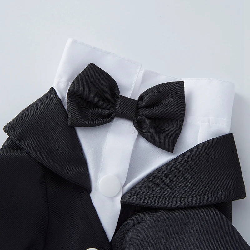 This refined pet tuxedo with bow tie is designed to bring timeless elegance to your companion’s attire. Crafted with a classic design, the tuxedo features a tailored fit that mimics traditional evening wear while ensuring comfort and ease of movement. The crisp white shirt front is complemented by a distinguished bow tie, adding the perfect finishing touch for formal occasions. Ideal for weddings, special events, or professional photography, this ensemble allows your pet to exude sophistication with every step.